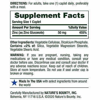 Nature S Bounty Zinc 50 Mg 400 Caplets Shopee Indonesia