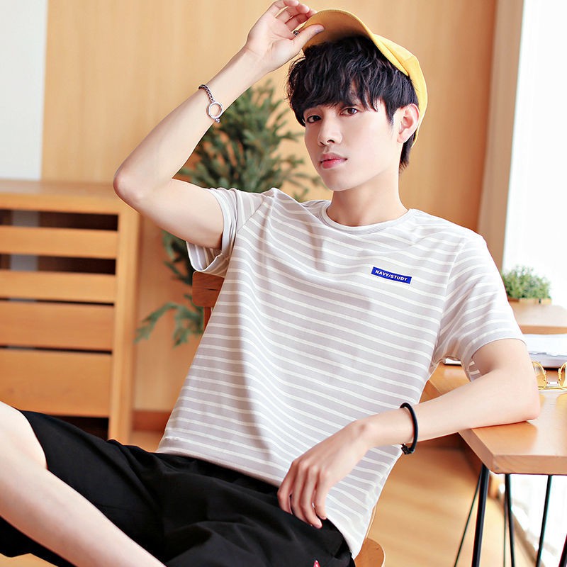 Not Easy To Deform Summer Striped Short Sleeved T Shirt Male Youth Korean Loos Shopee Indonesia
